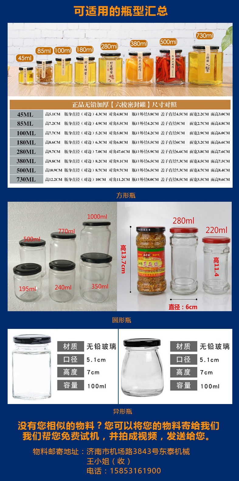 6.旋蓋機構(gòu)高度可快速調(diào)節(jié),可適用相同口徑、不同高度的瓶子旋蓋;更換部分零件即可實現(xiàn)不同瓶徑、不同口徑的旋蓋,更換快捷方便。