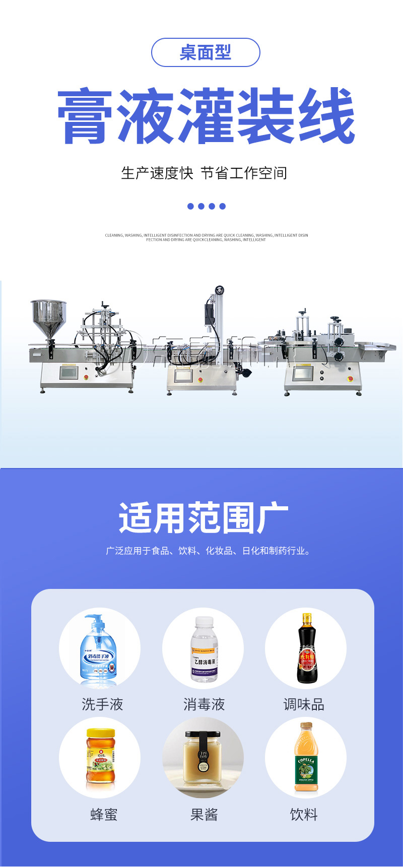 桌面型自動(dòng)灌裝機(jī)是我公司的灌裝封口設(shè)備系列,適用于灌裝各種圓形,異型瓶和小瓶。 洗手液灌裝機(jī)主要適用于各種注射劑,消毒劑,口服液和糖漿,酒精和各種醫(yī)用液體的灌裝。 它廣泛用于食品,制藥,化學(xué)工業(yè)和科學(xué)研究領(lǐng)域。